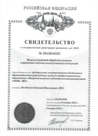 Болденков, Е. Н. Модель первичной обработки сигналов в приёмнике системы межспутниковых измерений. — РОСПАТЕНТ. Свидетельство №2013610532 от 09.01.2013